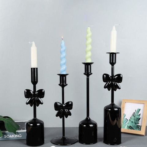 Lichte Luxe Glazen Kaarshouder Groothandel Nordic Aangepaste Kleur Huisdecoratie Restaurant Ornamenten Zwart Glas Kandelaar
